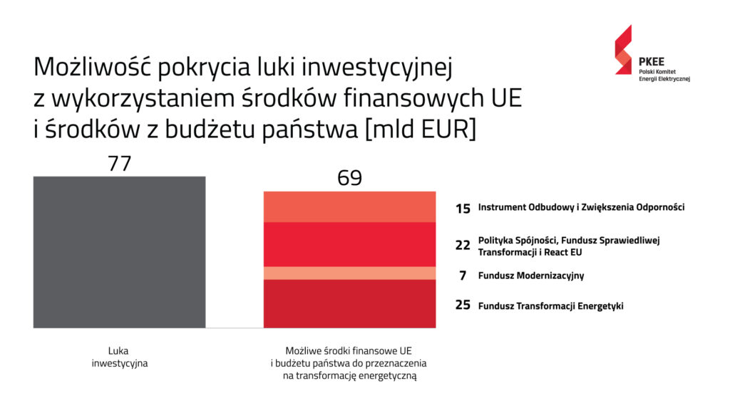 Poziom jej redukcji będzie ostatecznie uzależniony od efektywności wykorzystania środków unijnych, o które częściowo trzeba będzie konkurować. Autorzy raportu wyliczyli, że w żadnym scenariuszu środki unijne nie pokryją jej w 100% i w efekcie luka wyniesie nie mniej niż 8 mld euro. Tym bardziej, że środki z UE będą także wykorzystane w innych sektorach gospodarki, takich jak np. gazownictwo i transport oraz przez gospodarstwa domowe. Energetyka nie będzie jedynym beneficjentem dostępnych funduszy, a luka inwestycyjna zostanie dodatkowo pogłębiona o koszty inwestycji w tych sektorach.